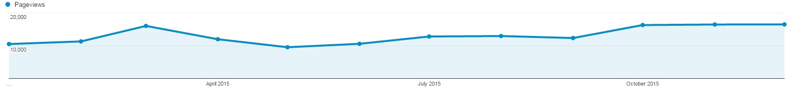 Miltä sitten sivuston lukijämäärät kokonaisuudessaan näyttävät? Sivulatausten määrä kuukautta kohden on tällainen: