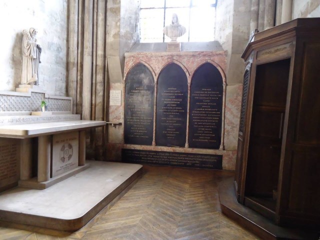 Descartesin nykyinen hauta Saint-Germain des prés’n kirkossa Pariisissa (Kuva: kirjoittajan henkilökohtainen valokuva-arkisto)