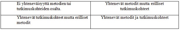 Klassisen nojatuolifilosofian ja äärinaturalismin välillä on toki muitakin vaihtoehtoja. Mutta huomionarvoista on, että näiden vaihtoehtojen erottelu pelkästään a priori / a posteriori –tiedonhankintaan perustuen ei ole välttämättä kaikkein hedelmällisin vaihtoehto. On hyviä syitä ajatella, että sekä metafysiikan että tieteen piirissä käytetään molempia tiedonhankintamuotoja. Tämä ei silti tarkoita sitä, että metafyysikot tyypillisesti tekisivät laboratoriokokeita – tieteen tuloksia voidaan hyödyntää, vaikka itse empiirinen tutkimus jätettäisiinkin luonnontieteilijöiden harteille. Luontevampaa onkin analysoida luonnontieteiden ja metafysiikan suhdetta yleisemmin niiden tutkimuskohteiden ja tutkimusmenetelmien perusteella. Näin voimme muodostaa vaihtoehdoista seuraavan nelikentän (kts. Matteo Morganti ja T.E. Tahko, ”Moderately Naturalistic Metaphysics”):