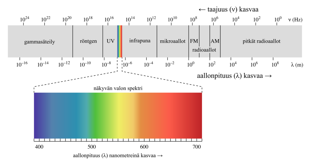 Kuva 1: Sähkömagneettinen säteily @ Wikipedia.fi (CC BY-SA 3.0)