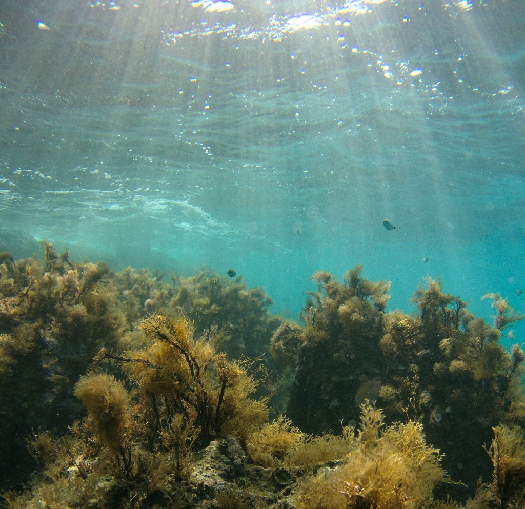 Kuva: Vesi läpäisee parhaiten näkyvän valon spektristä sinistä valoa, joka pääsee jopa 240 metrin syvyyteen asti. Luultavasti tämän vuoksi kasvien lehtivihreä ottaa vastaan energiaa tehokkaimmin sinisestä valosta.