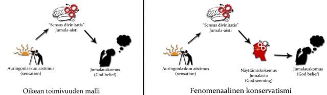 Plantingalainen malli vs. fenomenaalinen konservatismi. ks. Tucker 2011